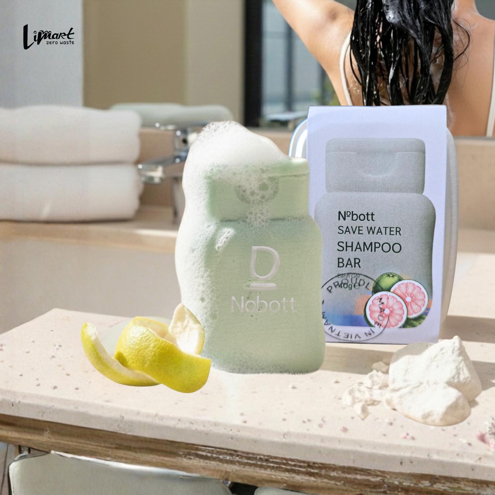 Bánh gội Nobott save water – Vỏ bưởi hòa bình (40g) | Hỗ trợ giảm gàu – Giảm ngứa- Phồng tóc – Làm sạch da dầu