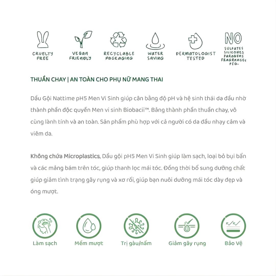 Dầu Gội Xả Men Vi Sinh 3In1 Nattime pH5 Probiotic Detox
