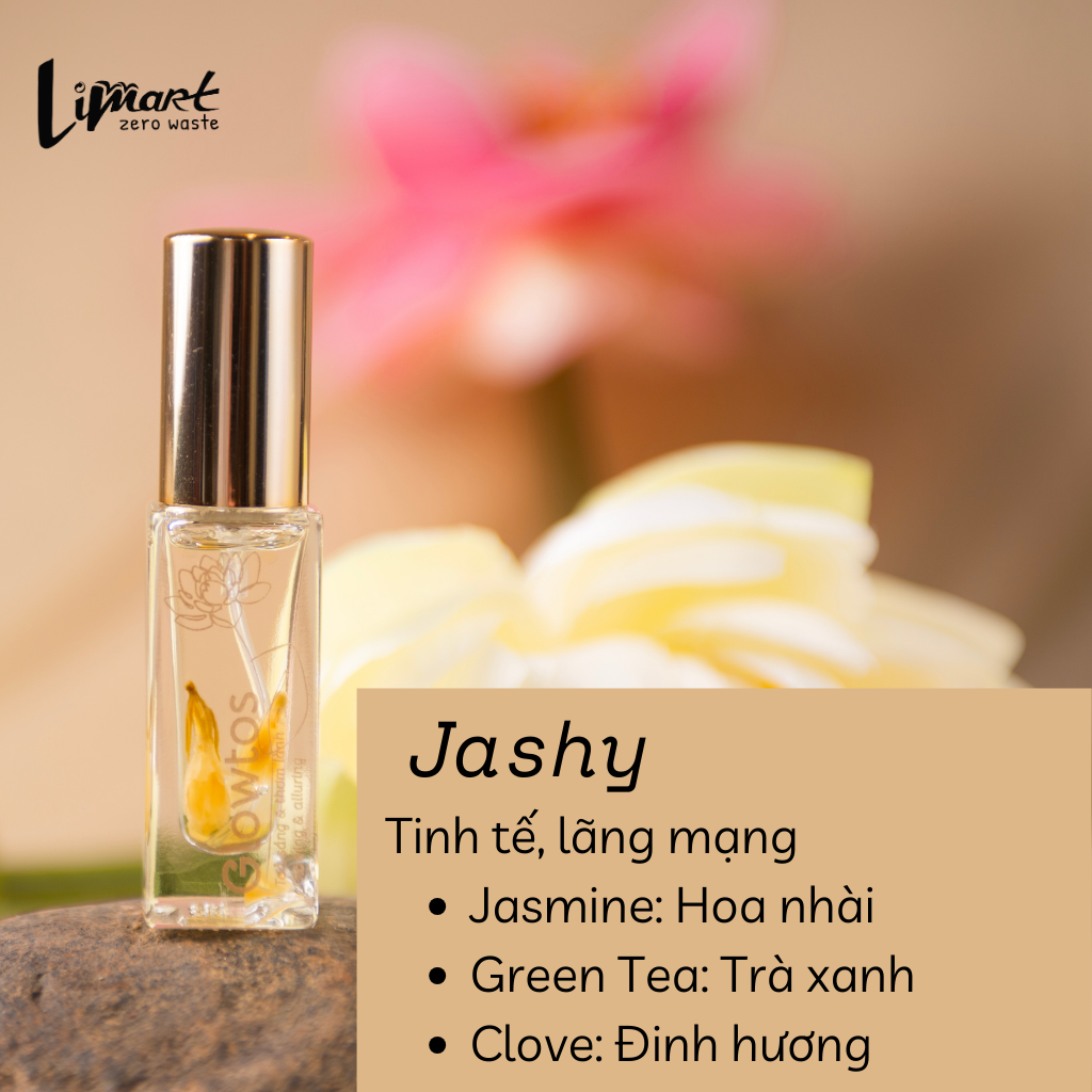 Sự kết hợp giữa hoa lài, trà xanh thanh mát và chút nồng nàn từ đinh hương tạo nên mùi hương mềm mại nhưng sâu sắc. Jashy dành cho những tâm hồn nhẹ nhàng, yêu cái đẹp và luôn muốn giữ cho mình một nét quyến rũ kín đáo.